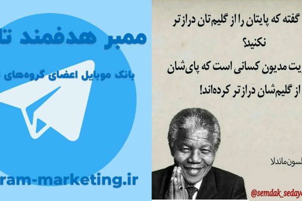 پیشنهاد میکنم در خصوص آشنایی با پنل فروش ممبر تلگرام، ویدیوی بالا رو با دقت مشاهده فرمایید و در صورت هر پرسش یا ابهامی، لطفا در تلگرام به شماره ۰۹۱۲۱۴۰۰۲۳۷ عبارت پنل افزایش ممبر تلگرام را در پیام ارسال فرمایید.