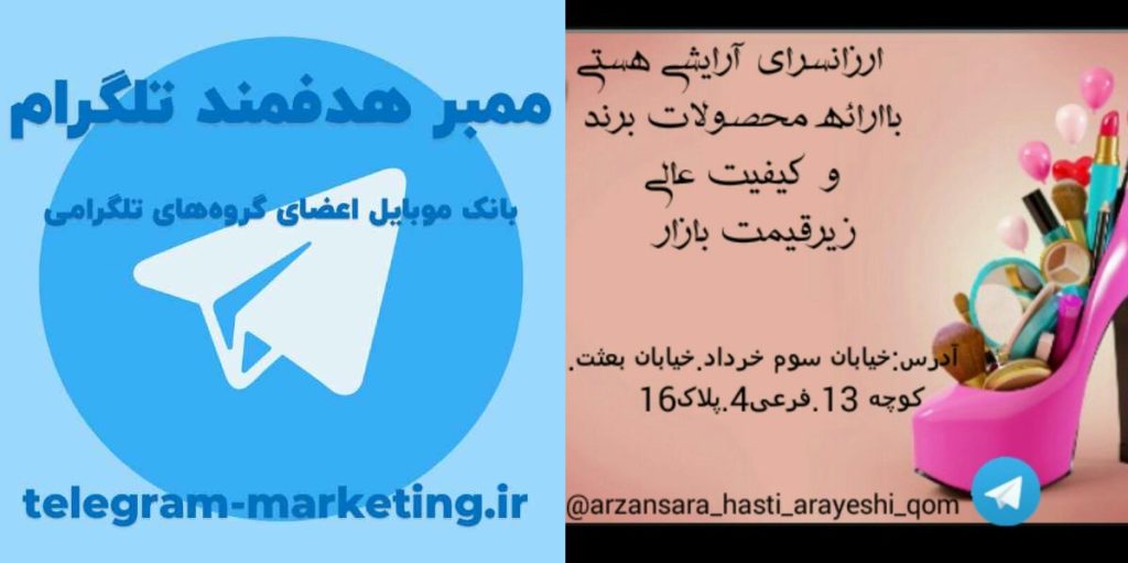 عزیزانی که در ارزانسرای آرایشی هستی عضو هستند، در گروههای زیر نیز اکثرا عضو هستند که علاوه بر اینکه میتوانیم این افراد رو به گروه شما اضافه کنیم، امکان ارسال مجموعه شمارههای همراه از عضوهای این گروهها نیز امکان پذیر هست. جهت درخواست لیست شماره تماس از اعضای ارزانسرای آرایشی هستی و یا هر گروهی که مدنظرتون هست، لطفا عبارت بانک اطلاعات رو در تلگرام به شماره ۰۹۱۲۱۴۰۰۲۳۷ ارسال فرمایید.